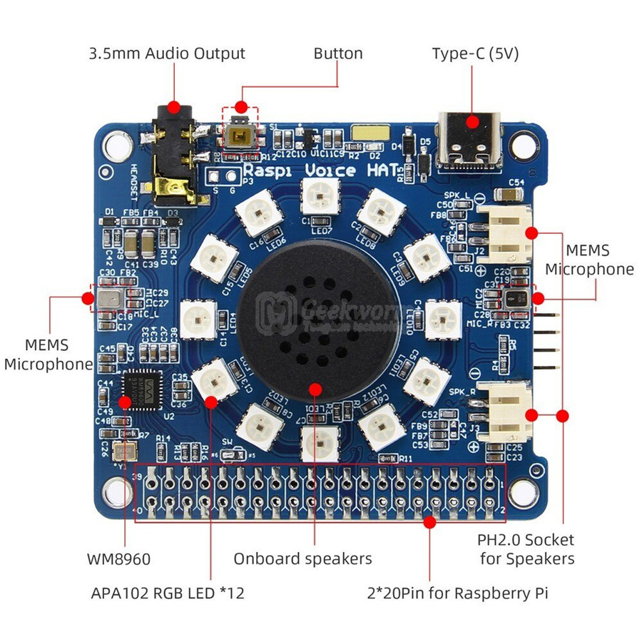 Read More…Voice HAT Raspberry Pi Dual Microphone Voice Recognition Recording AI Smart Speaker Development Board for Raspberry Pi 4B/3B+/3B