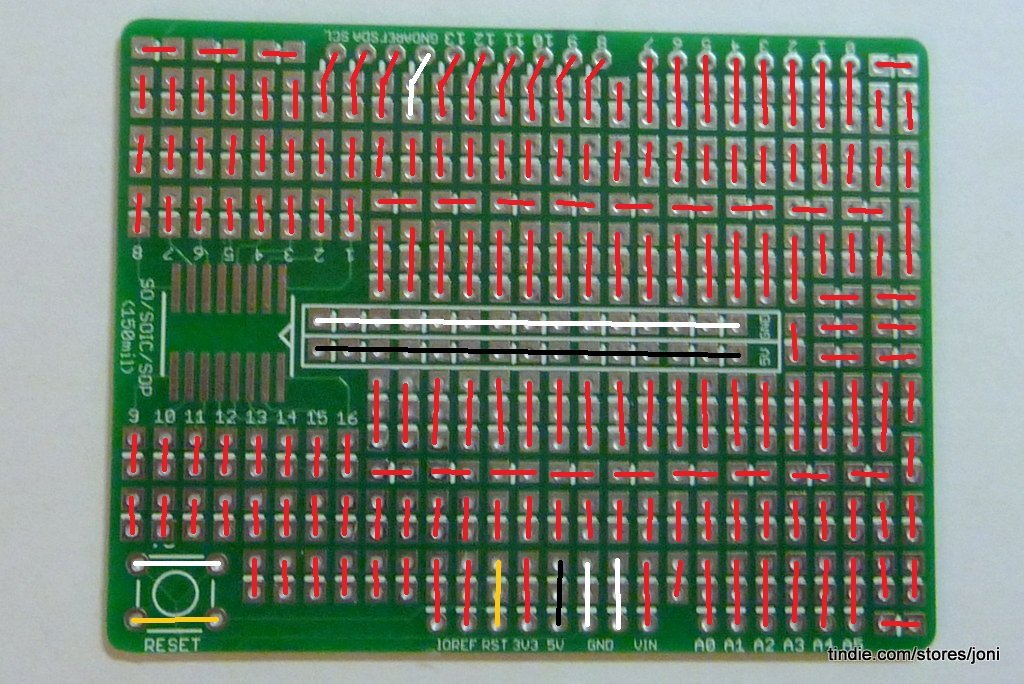 What is it? Arduino R3 compatible protoshield Features with smd pads for 16 pin SOIC (150mil pitch) package (on the top side) with smd pads for 16 pin TSSOP (65mil pitch) package (on the bottom side…