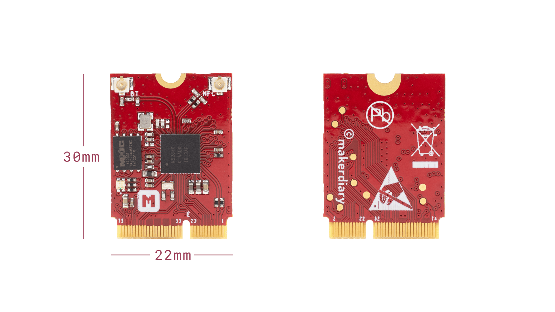 The module comes with an M.2 (also known as NGFF - Next Generation Form Factor) Key-E form factor, 64Mbit QSPI flash memory, RGB LED and U.FL/I-PEX MHF antenna connectors, that will simplify and minimize the development cycle and deployment of your end-product helping to accelerate its time-to-market.